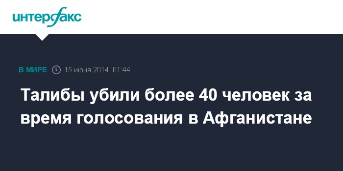Москва. 15 июня. INTERFAX.RU - Боевики движения "Талибан" убили в Афганистане 46 человек за время голосования во втором туре президентских выборов, сообщила BBC.