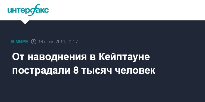 Москва. 16 июня. INTERFAX.RU - Службы спасения ЮАР сообщают о том, что в результате сильного наводнения пострадало около 8 тысяч жителей трущоб на окраине Кейптауна, сообщает BBC News.
