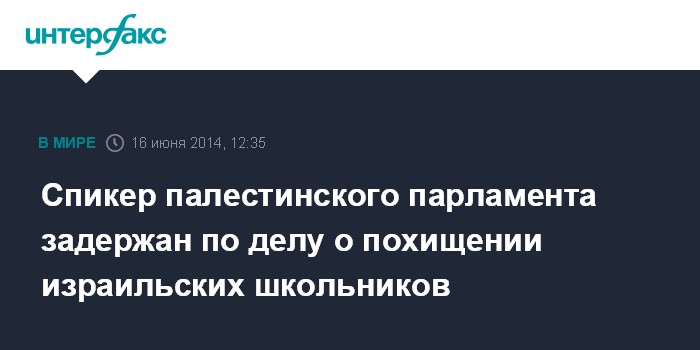 Спикер палестинского парламента задержан по делу о похищении израильских школьников