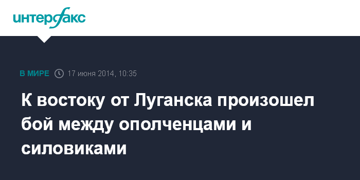 Москва. 17 июня. INTERFAX.RU - Бой между украинскими силовыми подразделениями и противостоящими им ополченцами произошел на востоке Луганской области, сообщил руководитель украинской группы информирования по силовой операции Владислав Селезнев.