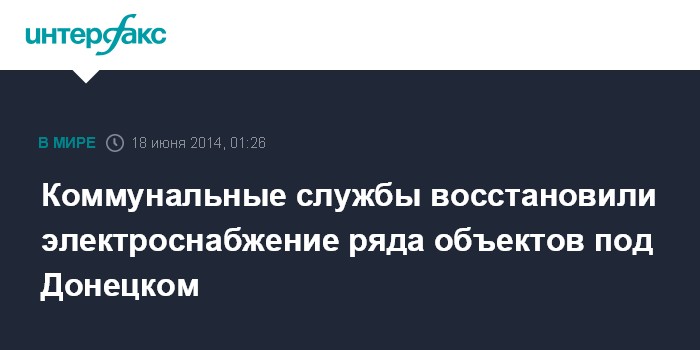 Москва. 18 июня. INTERFAX.RU - Компания "ДТЭК Донецкоблэнерго" восстановила электроснабжение подстанций, подающих воду в Краматорск, Дружковку и Константиновку, которые были повреждены в результате боевых действий, сообщила в среду пресс-служба ПАО "ДТЭК Донецкоблэнерго".