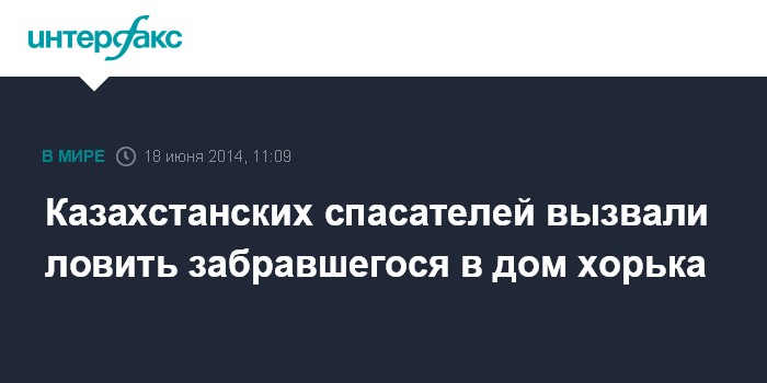 Москва. 18 июня. INTERFAX.RU - В Казахстане в городе Шымкент (административный центр Южно-Казахстанской области) в среду утром во двор частного дома забежал дикий хорек. Владелец дома обратился за помощью к спасателям, сообщил агентству "Интерфакс" официальный представитель спасательного отряда областного департамента по ЧС Павел Вишенин.