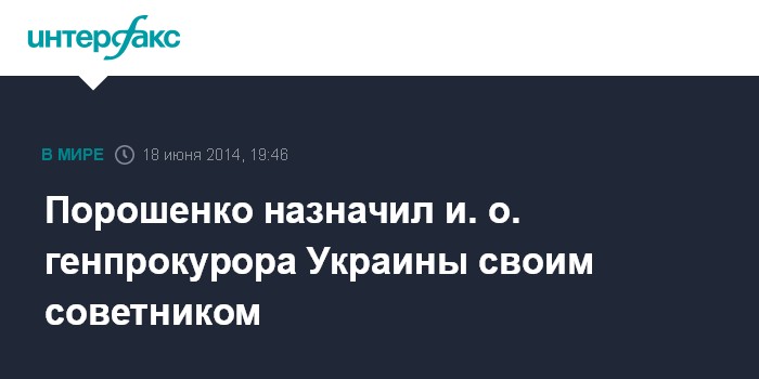 Москва. 18 июня. INTERFAX.RU - Президент Украины Петр Порошенко назначил бывшего и. о. генерального прокурора Олега Махницкого своим советником. Ранее в среду Порошенко уволил Махницкого с поста и. о. генпрокурора.