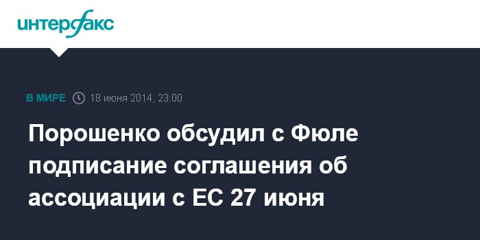 Порошенко обсудил с Фюле подписание соглашения об ассоциации с ЕС 27 июня