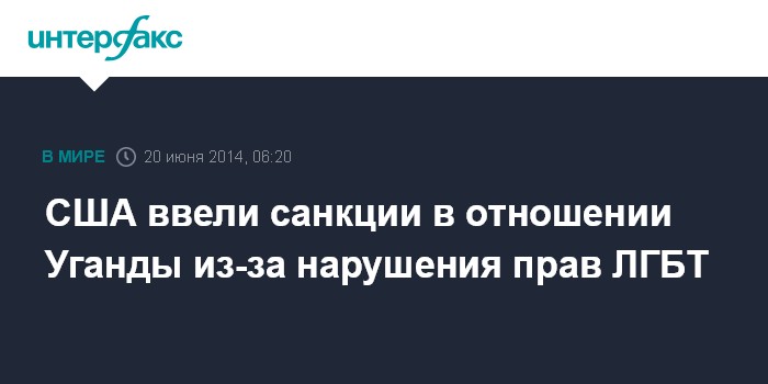 Москва. 20 июня. INTERFAX.RU - США ввели санкции в отношении Уганды из-за закона, который, по мнению американских властей, ущемляет права гомосексуалистов, сообщает BBC.