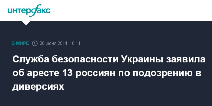 Москва. 20 июня. INTERFAX.RU - Служба безопасности Украины арестовала почти сотню человек, которым вменяется диверсионная деятельность, среди них есть россияне, заявляет глава спецслужбы Валентин Наливайченко.