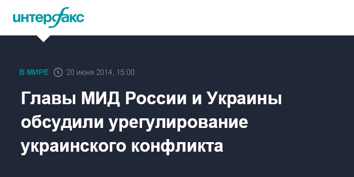 В сообщении говорится, что беседа Лаврова с Климкиным состоялась 20 июня "в развитие" телефонного разговора президента Российской Федерации Владимира Путина с президентом Украины Петром Порошенко, которая состоялась 19 июня 2014.