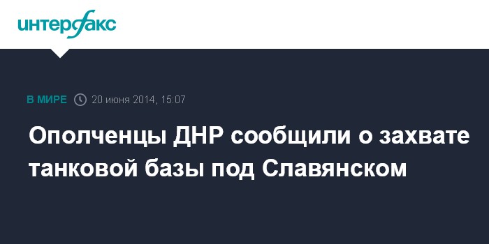 Москва. 20 июня. INTERFAX.RU - Ополченцы непризнанной "Донецкой народной республики" заявили о том, что взяли под контроль танковую базу украинской армии в Артемовске Донецкой области.