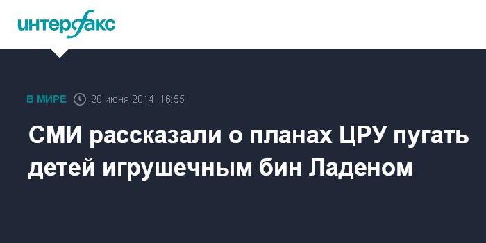 Москва. 20 июня. INTERFAX.RU - ЦРУ разработало игрушки в виде бывшего лидера террористической сети "Аль-Каида" Осамы бин Ладена, которые должны были пугать детей. Об этом пишет The Washington Post со ссылкой на знакомые с проектом анонимные источники.