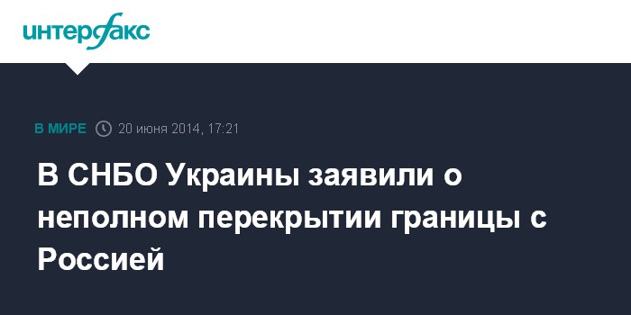 Москва. 20 июня. INTERFAX.RU - Украинские силовики не полностью контролируют государственную границу с Россией, заявил представитель информцентра Совета национальной безопасности и обороны СНБО Владимир Чеповой.