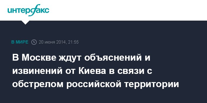 Москва. 20 июня. INTERFAX.RU - Российская сторона ждет от Киева объяснений и извинений в связи с обстрелом российской территории и ранением российского таможенника, заявляют в Кремле.