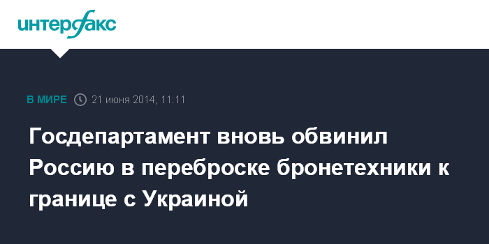 Москва. 21 июня. INTERFAX.RU - У властей США есть сведения о том, что Россия готовится к отправке дополнительных танков к украинской границе, сообщила представитель американского госдепа Дженнифер Псаки.