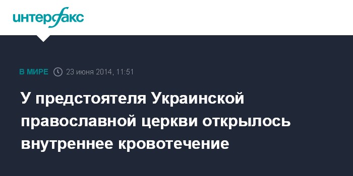 Москва. 23 июня. INTERFAX.RU - Состояние здоровья митрополита Киевского и всея Украины Владимира ухудшилось, у него произошло внутреннее кровотечение.
