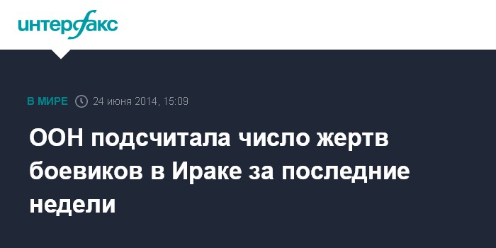Москва. 24 июня. INTERFAX.RU - Жертвами наступления экстремистов в Ираке за последние 17 дней стали не менее 1075 человек, заявил во вторник в Женеве представитель Управления Верховного комиссара ООН по правам человека Руперт Колвилл. Кроме того, по его словам, 658 человек получили ранения.