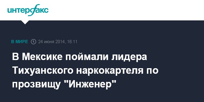 Москва. 24 июня. INTERFAX.RU - Мексиканские военные задержали главу некогда крупнейшего поставщика кокаина в США - Тихуанского наркокартеля. Об этом сообщает газета Octavo Dia.