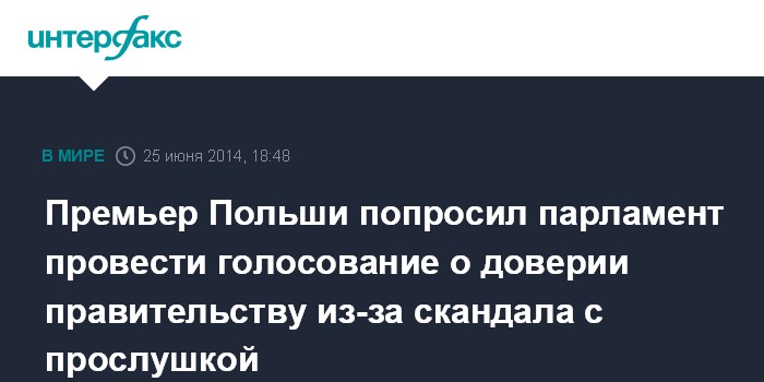 Москва. 25 июня. INTERFAX.RU - Премьер-министр Польши Дональд Туск в среду попросил Сейм срочно провести голосование о доверии правительству из-за скандала с перехватом разговора министров.