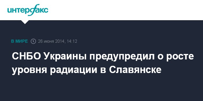 Москва. 26 июня. INTERFAX.RU - В Славянске Донецкой области возможен рост радиационного фона из-за действий незаконных вооруженных формирований, заявляет спикер Информационно-аналитического центра при СНБО Андрей Лысенко.