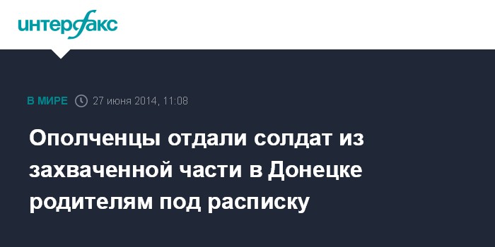 Москва. 27 июня. INTERFAX.RU - Солдаты-срочники из воинской части в Донецке, которую взяли вчера под свой контроль ополченцы, отпущены на свободу, сообщают ополченцы.