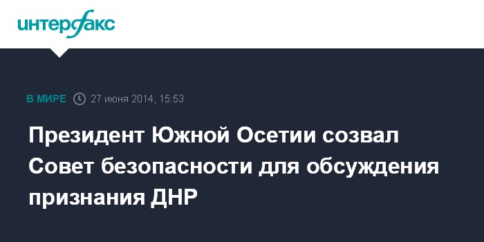 Москва. 27 июня. INTERFAX.RU - Глава Южной Осетии Леонид Тибилов созвал Совет безопасности для обсуждения признания самопровозглашенной Донецкой народной республики (ДНР). Об этом "Интерфаксу" сообщили в пятницу в администрации президента Южной Осетии.