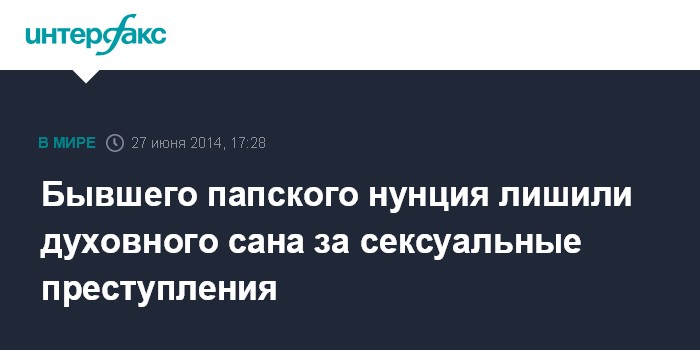 Бывшего папского нунция лишили духовного сана за сексуальные преступления