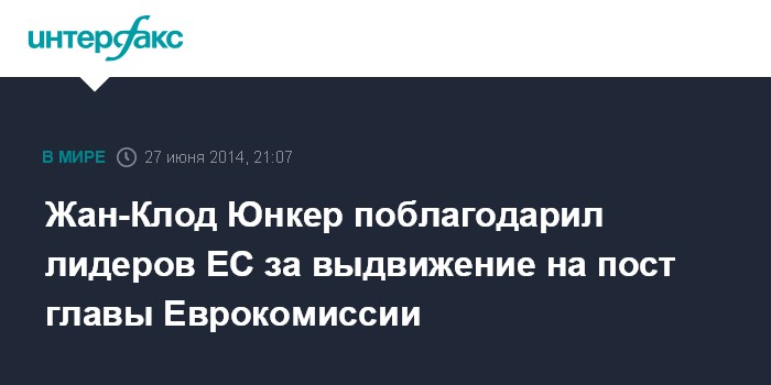 Москва. 27 июня. INTERFAX.RU - Бывший премьер-министр Люксембурга Жан-Клод Юнкер выразил лидерам ЕС признательность за выдвижение на пост председателя Еврокомиссии.