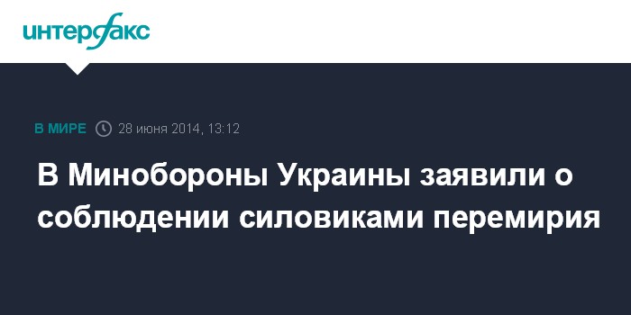 Москва. 28 июня. INTERFAX.RU - И.о. министра обороны Украины Михаил Коваль сообщил, что украинские военнослужащие в зоне силовой операции четко выполняют решение президента о продлении режима прекращения огня. "Украинские военнослужащие четко выполняют свои задачи. Эта ночь, в канун важного праздника, прошла более-менее спокойно", - сказал он "Интерфаксу-Украина" в субботу в Киеве.