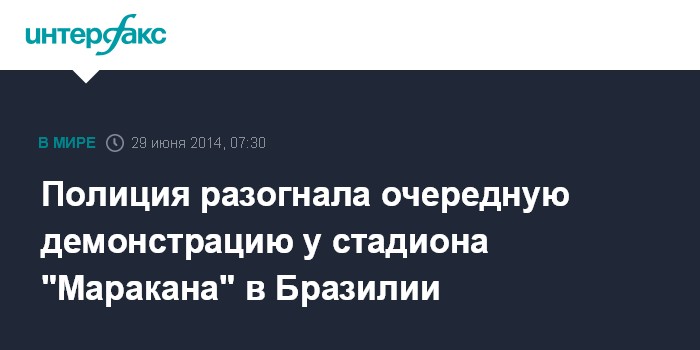 Москва. 29 июня. INTERFAX.RU - Бразильская полиция в очередной раз разогнала демонстрантов, протестовавших против чемпионата мира-2014 у стадиона "Маракана" в Рио-де-Жанейро.