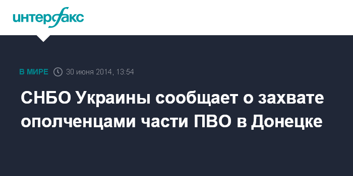 СНБО Украины сообщает о захвате ополченцами части ПВО в Донецке