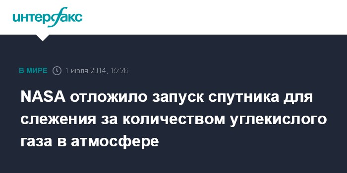 Москва. 1 июля. INTERFAX.RU - Американское космическое агентство NASA отложило запуск первого спутника для слежения за количеством углекислого газа в атмосфере, говорится в сообщении на сайте организации.
