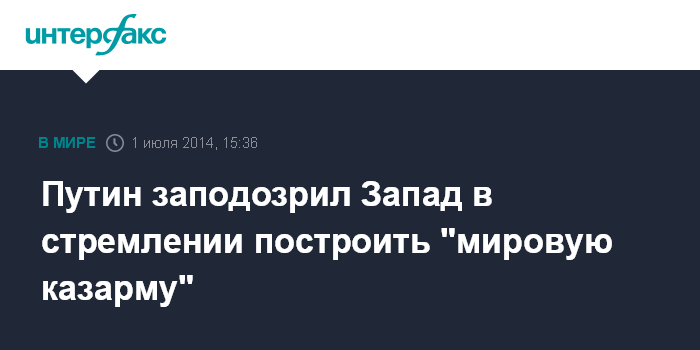 Путин заподозрил Запад в стремлении построить "мировую казарму"