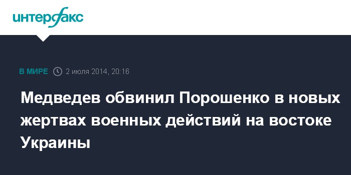 Москва. 2 июля. INTERFAX.RU - Премьер-министр РФ Дмитрий Медведев считает, что украинский президент Петр Порошенко совершил ошибку, прервав перемирие, и теперь несет личную ответственность за жертвы.