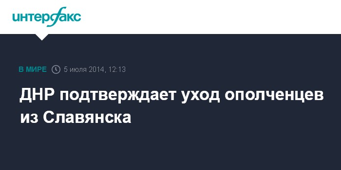 Москва. 5 июля. INTERFAX.RU - Власти самопровозглашенной "Донецкой народной республики" подтверждают, что ополченцы покинули Славянск, сообщает в субботу Первый канал российского телевидения.