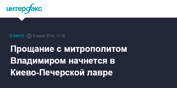 Москва. 5 июля. INTERFAX.RU - Духовенство и верующие смогут попрощаться с главой Украинской православной церкви (Московского патриархата) митрополитом Киевским и всея Украины Владимиром (Сабоданом) в субботу в Успенском соборе Киево-Печерской лавры, сообщает официальный сайт УПЦ (МП).