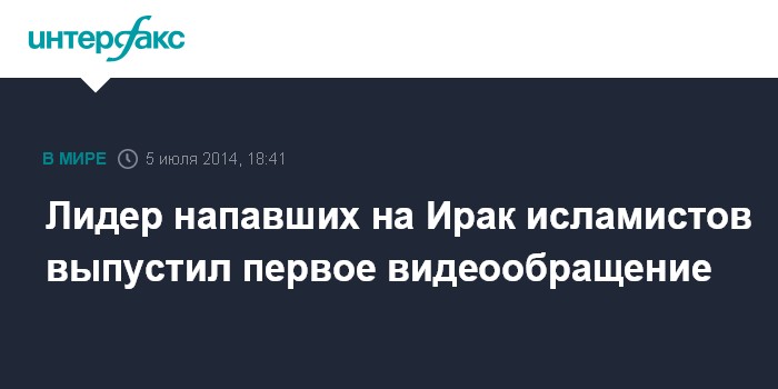 Москва. 5 июля. INTERFAX.RU - Лидер исламистов, которые взяли под контроль ряд районов Ирака и Сирии, выпустил первое видеообращение. Абу Бакр аль-Багдади потребовал от мусульман подчиниться ему, сообщает BBC News.