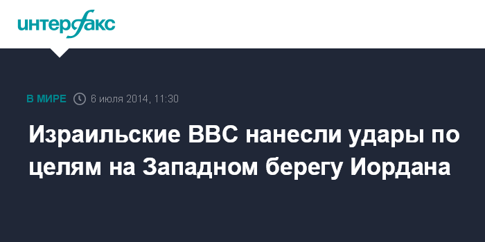 Москва. 6 июля. INTERFAX.RU - Самолеты израильских ВВС в воскресенье нанесли удары по 10 целям на Западном берегу реки Иордан, сообщило агентство AP со ссылкой на военные источники Израиля. Авиаударам, по сообщениям источников, подверглись объекты боевиков, включая ракетные пусковые установки, мастерские по производству оружия и другие.