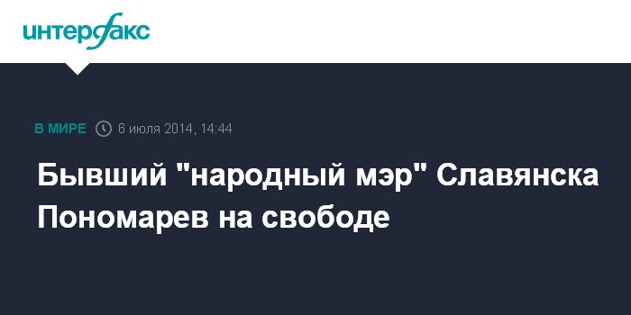 Москва. 6 июля. INTERFAX.RU - Бывший "народный мэр" Славянска Вячеслав Пономарев отпущен из-под стражи и перебазировался вместе с ополченцами в Донецк. "Все нормально, я жив, здоров. Собираюсь дальше воевать", - сообщил он журналистам в воскресенье.