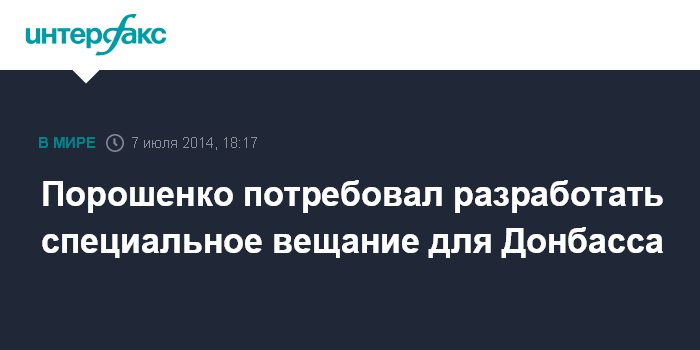 В связи с этим Порошенко считает важной разработку программы специального информационного вещания для Донбасса. По его словам, "нельзя допустить искажения фактов в информировании о событиях в Луганской и Донецкой областях".