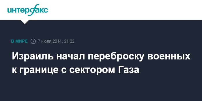 Москва. 7 июля. INTERFAX.RU - Власти Израиля стягивают войска к границе с сектором Газа и проводят мобилизацию 1,5 тыс. резервистов в рамках подготовки к возможной эскалации ситуации, пишет газета Jerusalem Post со ссылкой на высокопоставленного представителя армии обороны Израиля.