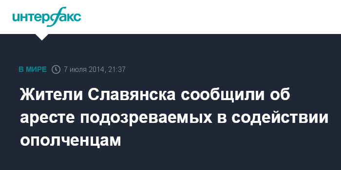 Москва. 7 июля. INTERFAX.RU - В Славянске проводятся аресты подозреваемых в содействии ополченцам, сообщили "Интерфаксу" местные жители.