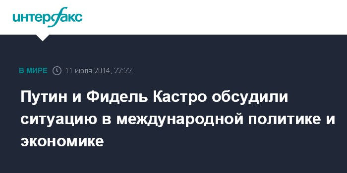 В начале переговоров президента РФ с председателем Госсовета Кубы Раулем Кастро кубинский руководитель спросил Путина о том, как прошла встреча с Кастро. Путин назвал беседу "очень интересной" и сказал, что они с Кастро затронули "международные вопросы и двусторонние проблемы, положение на валютных рынках, развитие сельского хозяйства".