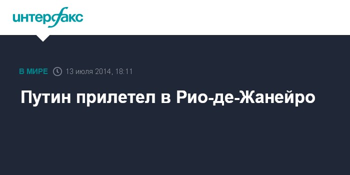 Москва. 13 июля. INTERFAX.RU - Президент РФ Владимир Путин прибыл в Рио-де-Жанейро, где планируется его участие в церемонии передачи России эстафеты проведения Чемпионата мира по футболу .