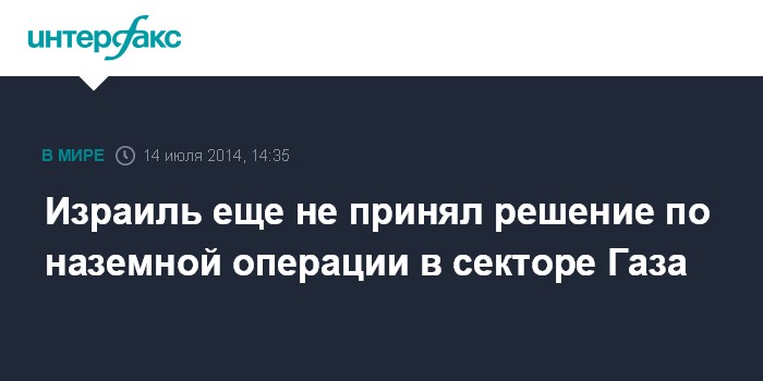Москва. 14 июля. INTERFAX.RU - Вопрос о возможности начала полномасштабной сухопутной операции в секторе Газа стоит на повестке дня, однако решение еще не принято, сообщила посол Израиля в РФ Дорит Голендер.