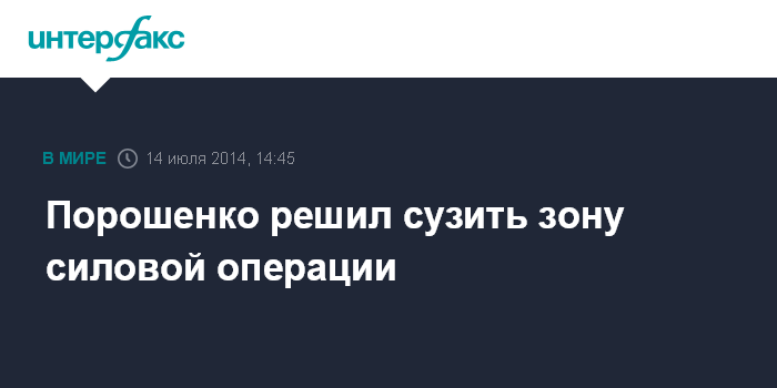 Москва. 14 июля. INTERFAX.RU - Президент Украины Петр Порошенко решил внести изменения в тактику проведения силовой операции на востоке страны.