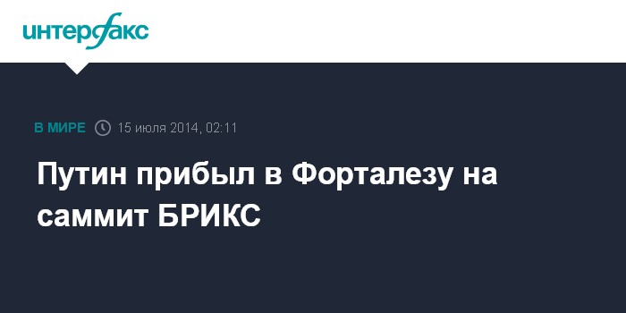 Москва. 15 июля. INTERFAX.RU - Президент РФ Владимир Путин прибыл в бразильскую Форталезу для участия в мероприятиях саммита БРИКС.