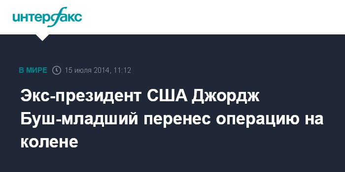 Москва. 15 июля. INTERFAX.RU - Бывшему президенту США Джорджу Бушу-младшему сделали операцию на левом колене, передает во вторник агентство EFE.