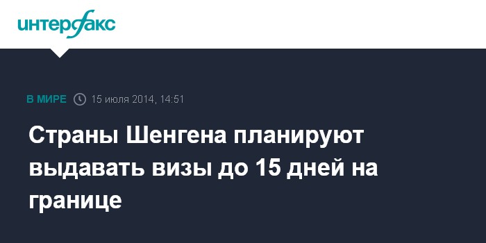 Москва. 15 июля. INTERFAX.RU - Страны-члены Шенгенского договора в ближайшие годы планируют выдавать краткосрочные визы сроком до 15 дней на границе, сообщил "Интерфаксу" пресс-секретарь представительства ЕС в России Сорен Либориус.