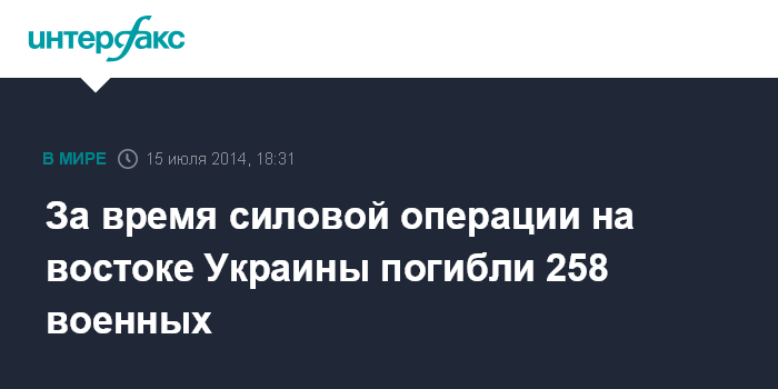 За время силовой операции на востоке Украины погибли 258 военных
