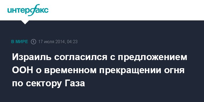 Израиль согласился с предложением ООН о временном прекращении огня по сектору Газа