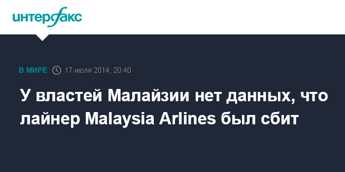 У властей Малайзии нет данных, что лайнер Malaysia Arlines был сбит