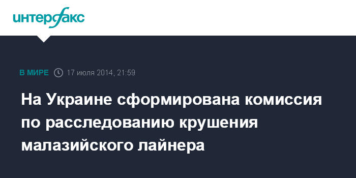 На Украине сформирована комиссия по расследованию крушения малазийского лайнера